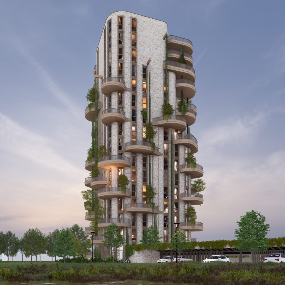 Op deze unieke plek in de Waelpolder verrijst een iconisch woongebouw. Slank en stijlvol, een opvallende verschijning in het Westlandse landschap. Deze imposante ranke woontoren met 36 koopappartementen bestaat uit maar liefst 15 bouwlagen en wordt 50 meter hoog. Hiervandaan is een fenomenaal uitzicht over het Westland gegarandeerd.